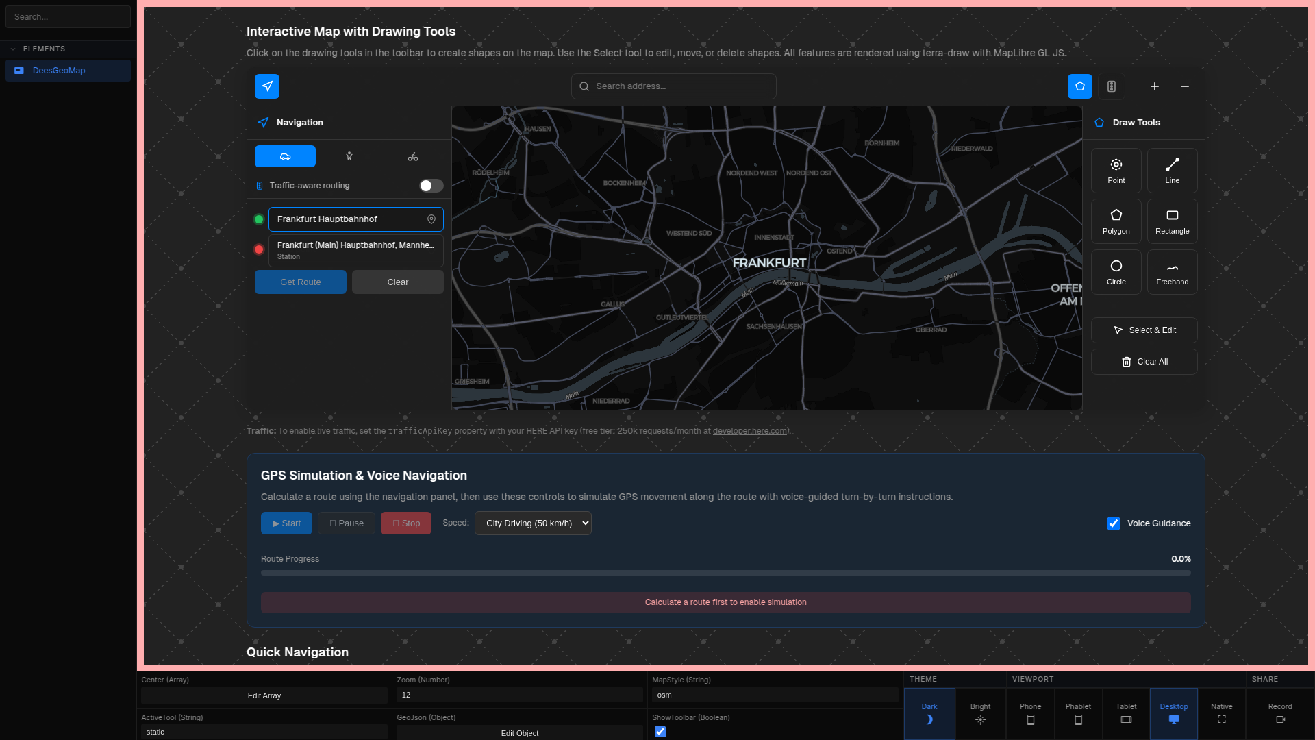 Juergen Kunz 50b5c9325c feat(dees-geo-map): Add voice-guided navigation with TTS, navigation guide controller and mock GPS simulator